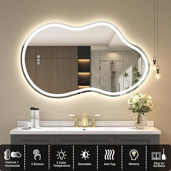Transform your bathroom into a statement of modern luxury with the BUNGALOW MERCER Irregular LED Vanity Mirror. Designed with an artistic, organic silhouette, this mirror blends contemporary elegance with smart functionality — perfect for stylish homes, vanity setups, or hotel interiors.