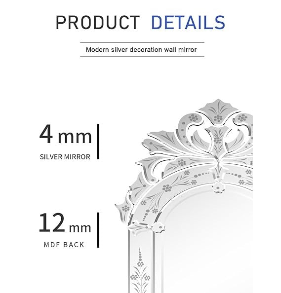 • Exquisite Venetian Craftsmanship: Features a hand-beveled rectangular frame with an ornate arched top and intricate etched floral detailing — a true celebration of timeless Venetian artistry.