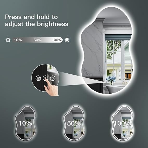 Featuring dimmable LED lighting, the mirror allows you to adjust brightness and color tone effortlessly — from warm, cozy ambience to crisp daylight clarity — ideal for makeup, shaving, or daily grooming. The built-in anti-fog function ensures a clear reflection even after hot showers, while the smart memory feature remembers your preferred lighting settings for a seamless experience every time.