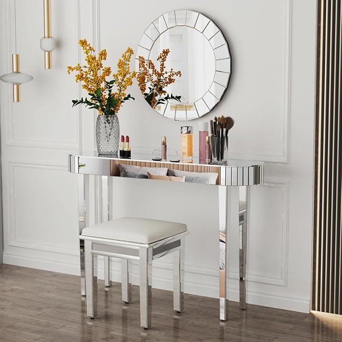 Modern Glam Design – Features a sleek mirrored finish with clean lines and beveled edges for a bold, luxurious look. Versatile Placement – Perfect for entryways, living rooms, hallways, or bedrooms as a console, sofa, or display table. High-Quality Craftsmanship – Built with durable materials and sturdy legs for long-lasting elegance and stability. Light-Reflecting Finish – Mirrored surfaces enhance natural light and add depth, making rooms feel more spacious. Statement Piece – Elevates any space with sophisticated style; ideal for displaying vases, sculptures, or candles.