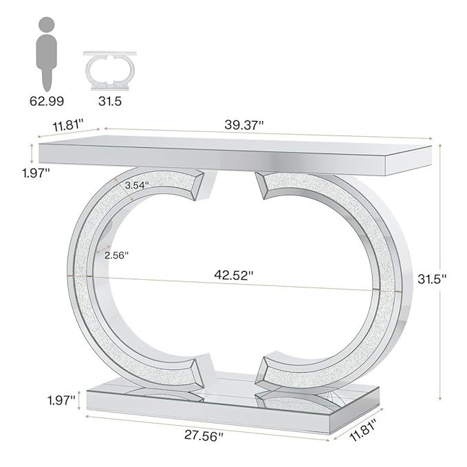 Bring a touch of modern glamour to your interiors with the Bungalow Mercer Silver Glass Console Table – a bold fusion of elegance, luxury, and function. Featuring a shimmering mirrored glass top, radiant crushed diamond inlay, and striking C-shaped silver base, this console table is designed to turn heads. Perfect for entryways, living rooms, or hallways, it creates a refined focal point while offering space to display décor, books, or lighting. The reflective surfaces enhance light, making rooms feel brighter and more spacious. Crafted with precision and sophistication, this table embodies the timeless style of Bungalow Mercer—where artful design meets everyday function.