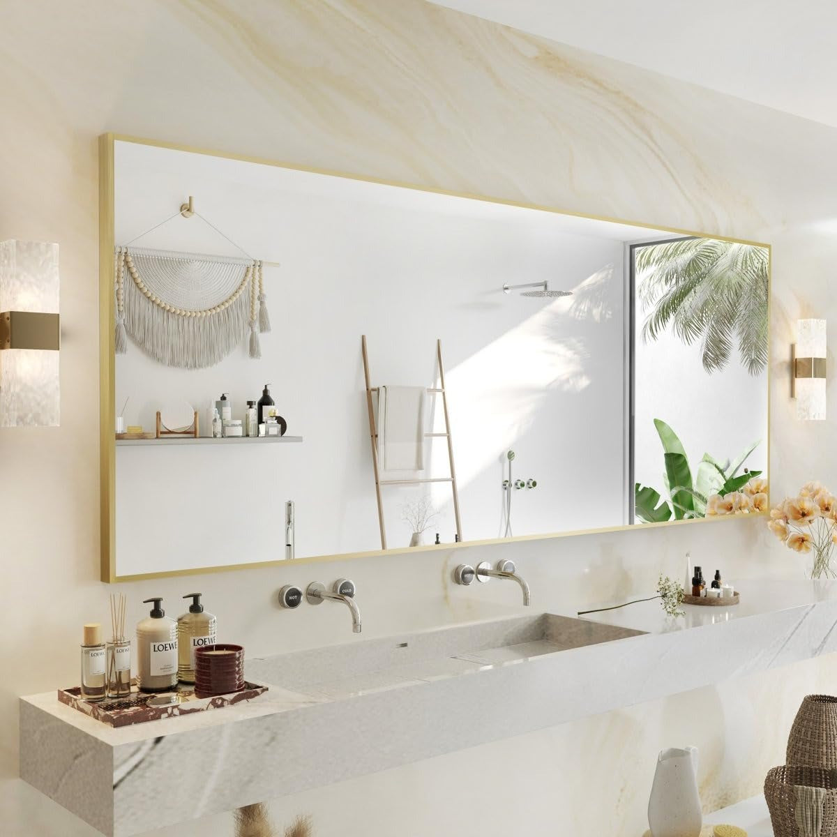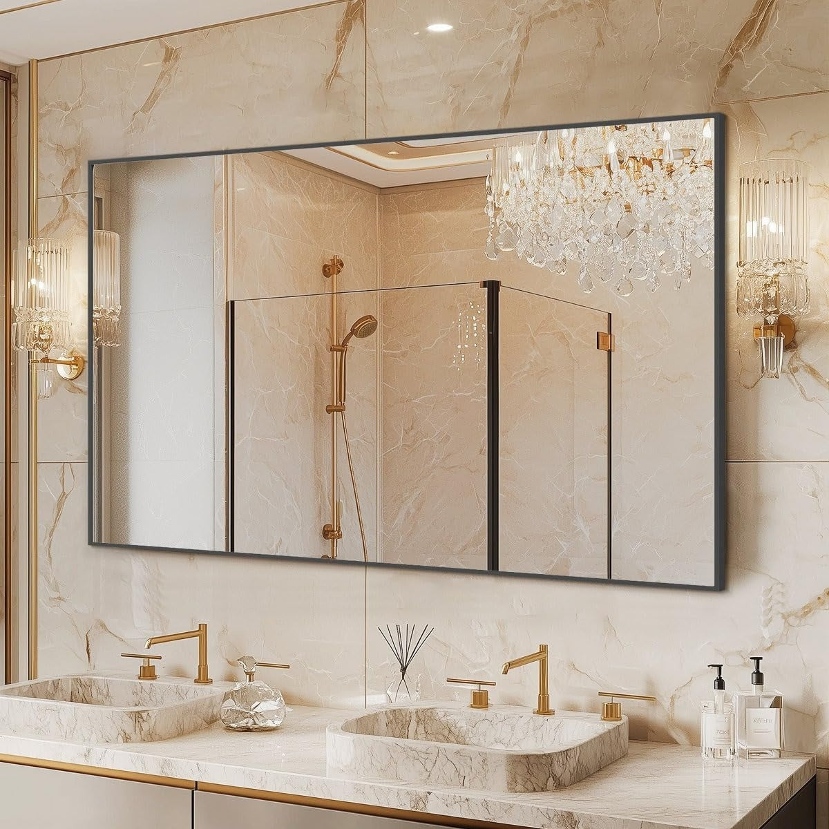 · Dual Hanging Orientation: Designed for flexibility, this mirror can be mounted both horizontally and vertically to suit your space and style. Whether placed above a wide vanity or used as a tall accent piece, it adapts perfectly to your room layout.