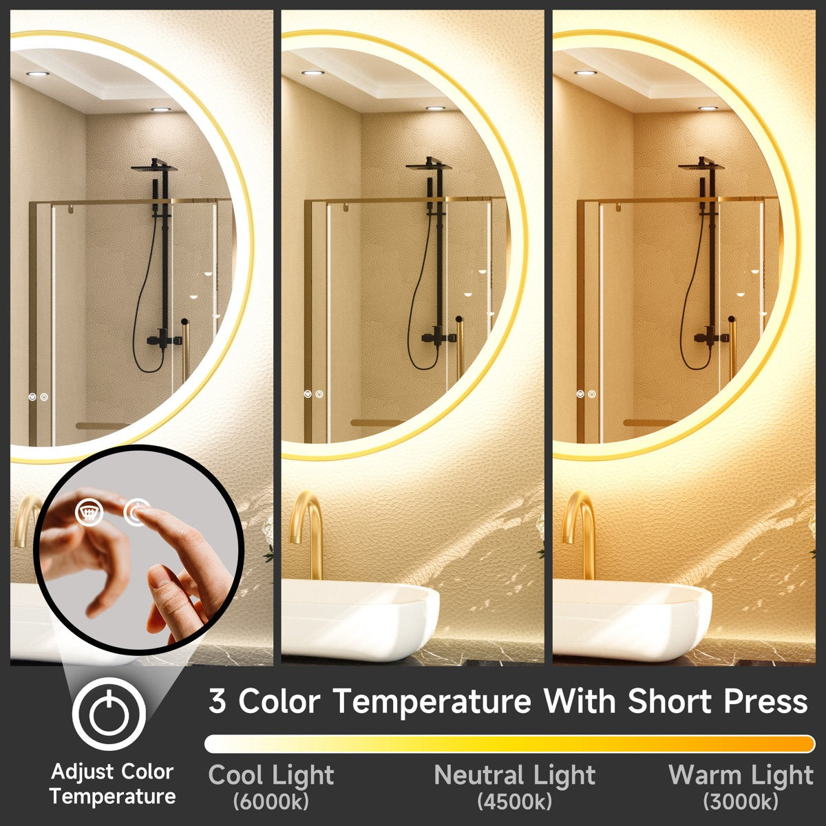 • Frontlit & Backlit LED Illumination – Dual lighting design provides bright, even facial illumination along with a soft ambient glow behind the mirror, creating a luxurious layered lighting effect.